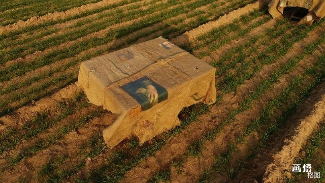 一個(gè)個(gè)麻布口袋在麥田里復(fù)活,一幀幀經(jīng)典圖像成為碎片“補(bǔ)丁”,朱新戰(zhàn)更多地遵從農(nóng)婦的選擇,把“失控”演繹到了一目了然的地步(這是很多藝術(shù)家苦苦盤算的學(xué)術(shù))。