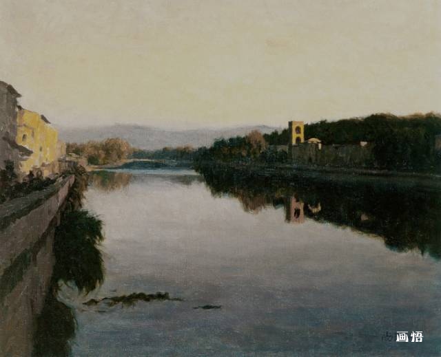 靳尚誼《光照阿爾諾河》45×55cm-1997-布面油畫