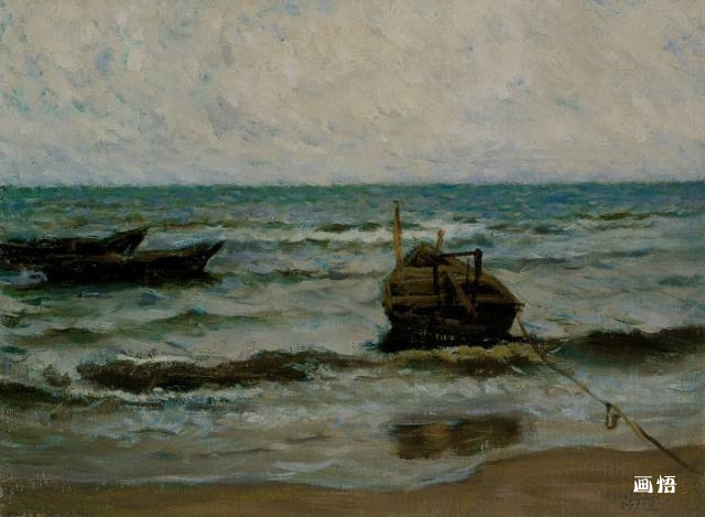 靳尚誼《海濱的船》 24.7×33.5cm 1988 紙板油畫