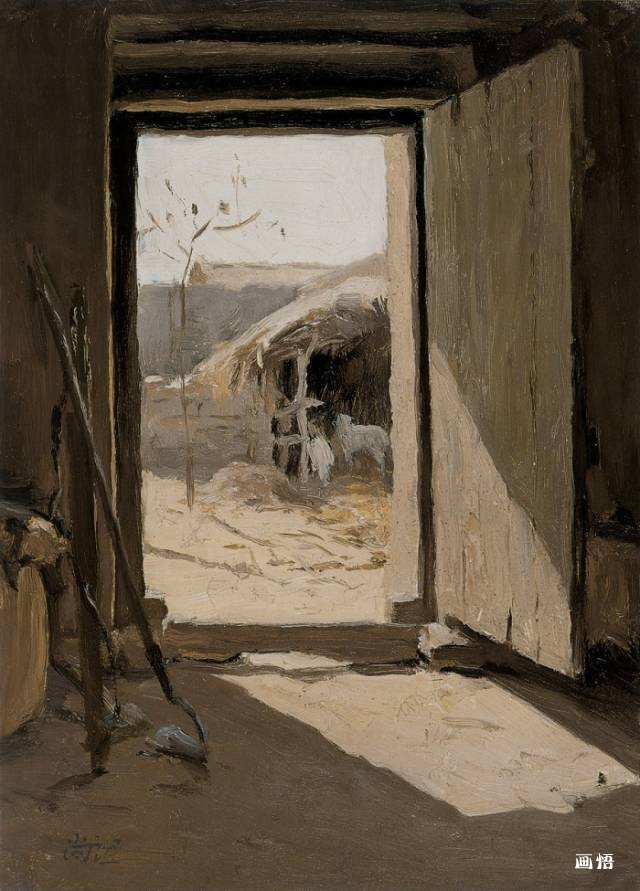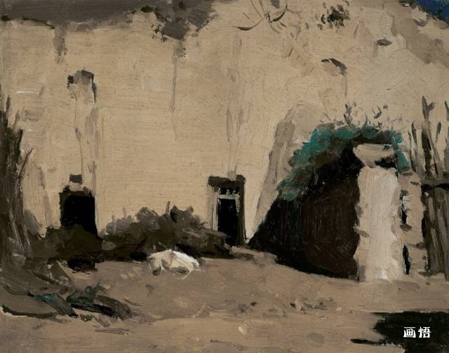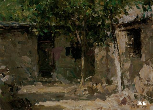 靳尚誼《太行山農(nóng)舍》23.5×34.6cm 1983 紙板油畫