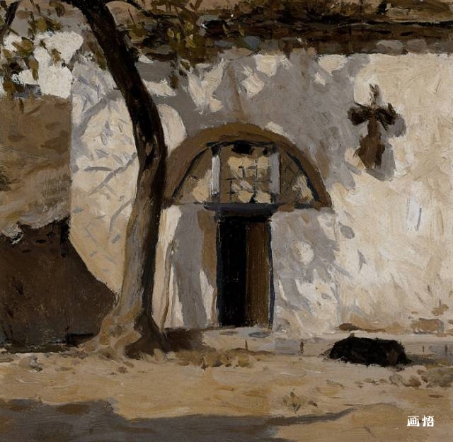 靳尚誼《樹影中的窯洞》16.5×17.2cm 1960 紙板油
