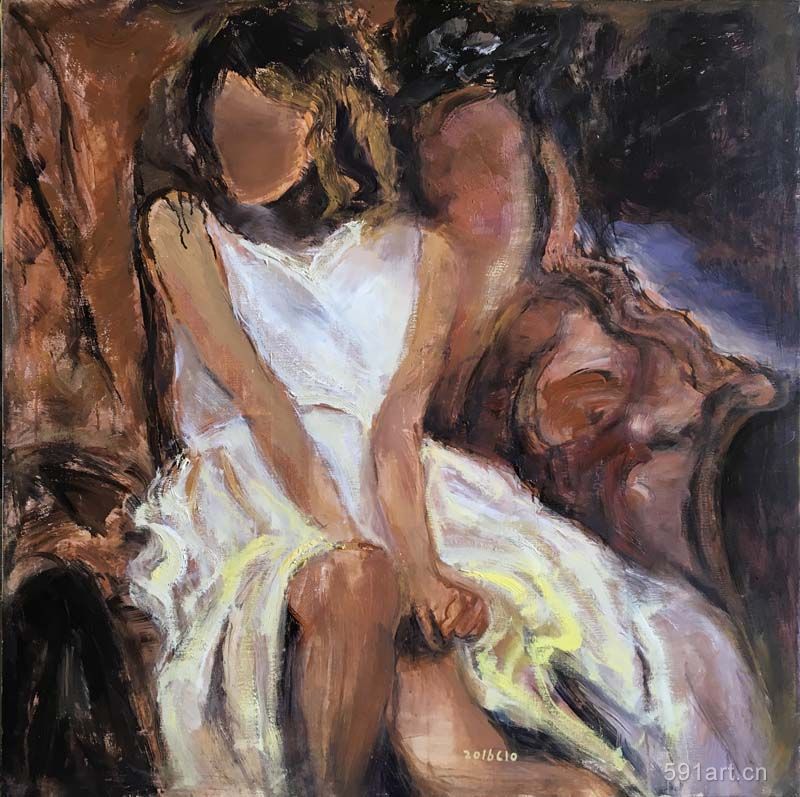 雖歷經(jīng)一年,但從時(shí)間上遠(yuǎn)不止365天的堆積與醞釀,圖中人物描繪,盡情地訴說(shuō)心中的那份涌動(dòng),細(xì)膩地描述女性心中的那份細(xì)柔的遐想,讓一點(diǎn)一滴的情懷鑲嵌布面閃著光亮的畫眼,每每完成一作品,總能釋懷,仿佛與陌生的行者進(jìn)入一次心靈相遇,而有時(shí)卻莫名的悲傷;有時(shí)卻春欲萌動(dòng)……二種情愫之間總是釋放著一種過(guò)于單純和原始的語(yǔ)言,由于自我的本性使然,作畫過(guò)程中無(wú)意讓自己精疲力盡,當(dāng)期待中那種感動(dòng)的思緒來(lái)訪問(wèn)時(shí),最終還是沒有讓精神個(gè)體得到真正的滿足,故,還試圖不停尋找可以更好的暢游的方式,到底用何種名不經(jīng)傳的繪畫方式和別具一格語(yǔ)言使其日久經(jīng)營(yíng)的色彩和形體得到統(tǒng)一,最后使內(nèi)心的呈現(xiàn)展示無(wú)疑?這是我的思考。