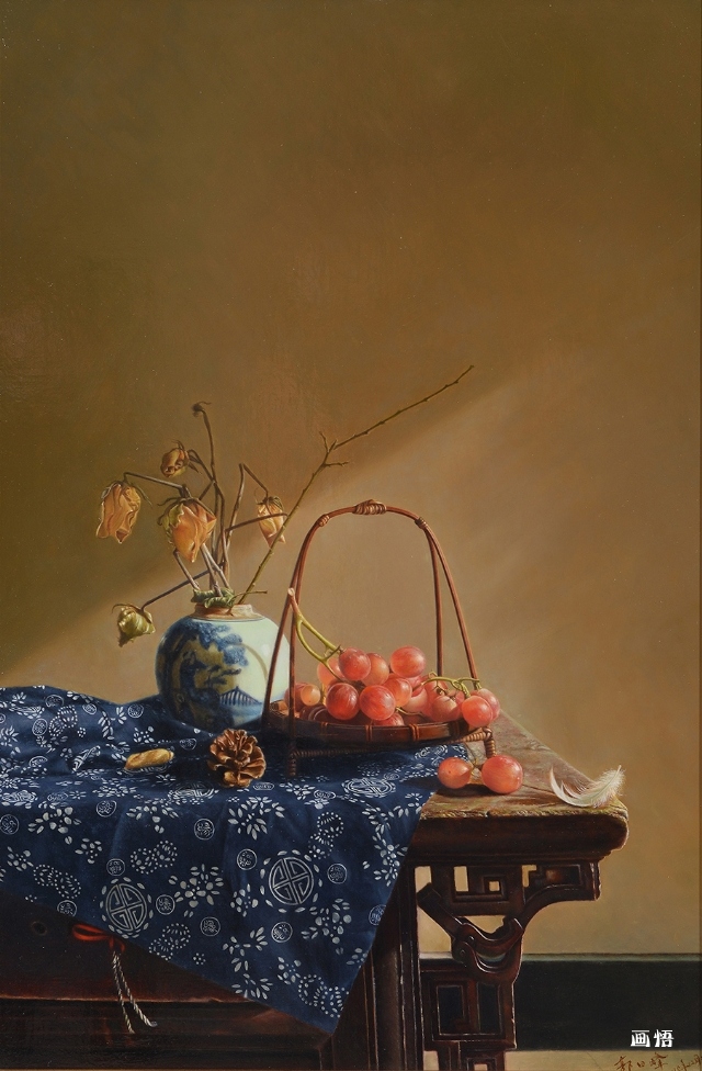 名稱:靜物余光1作者:郭日峰尺寸:60×90cm材質(zhì):布面油畫(huà)年代:2015年