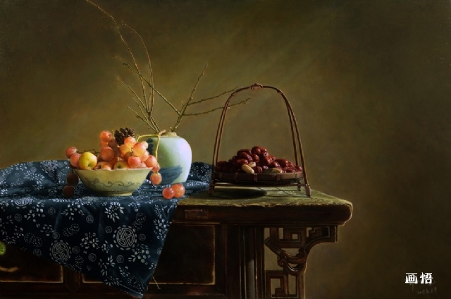 名稱:靜物余光3 作者:郭日峰 尺寸:60×90cm 材質(zhì):布面油畫(huà) 年代:2015年