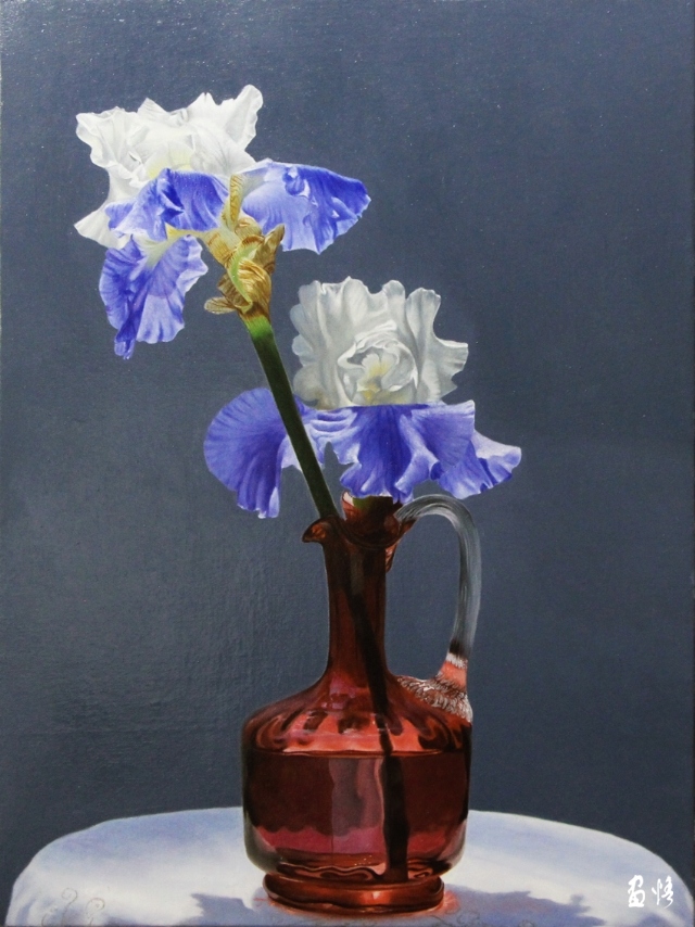 蘭花紅瓶,作者:郭日峰 尺寸:40x56cm 材質(zhì):布面油畫(huà) 年代:2017年