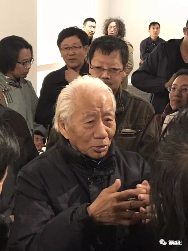 妥木斯先生(左一)和中國(guó)藝術(shù)研究院院長(zhǎng)連輯(左二)以及弟子劉大為(右一)周宇(右二)在展覽現(xiàn)場(chǎng)