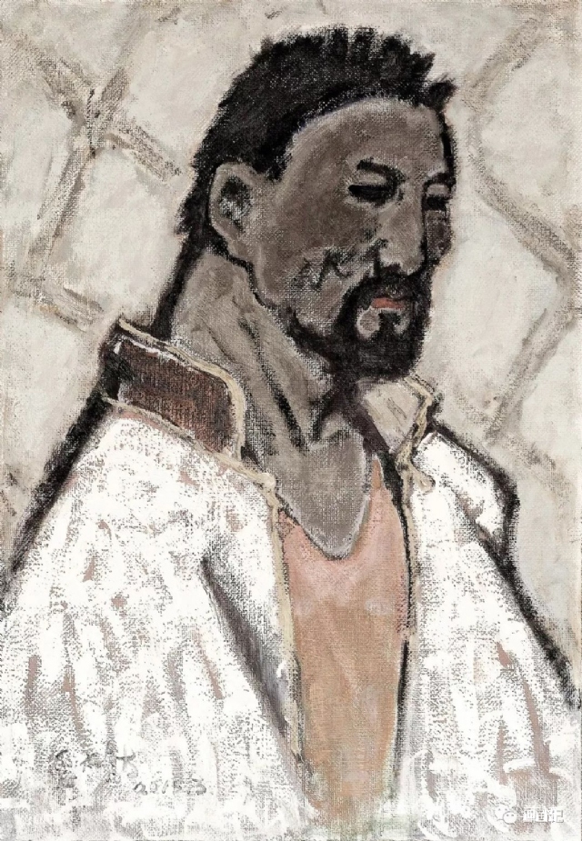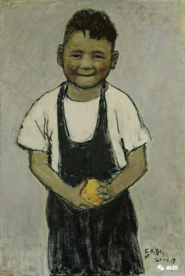 仔細(xì)看畫(huà)面,那些筆觸仿佛是他一次性涂抹成功的,上面并沒(méi)有運(yùn)用他標(biāo)志性的油畫(huà)筆的皴擦點(diǎn)染反復(fù)渲染。他就是那么信筆涂來(lái)。時(shí)而輕一點(diǎn)兒,時(shí)而重一點(diǎn)兒。時(shí)而抹一抹,時(shí)而撣一撣。時(shí)而虛一點(diǎn)兒,時(shí)而實(shí)一點(diǎn)兒,而每一個(gè)輕重虛實(shí)卻因?yàn)槿碎g的造型被他爛熟于心,所以他信手涂來(lái)就會(huì)渾然一體。那些繪畫(huà)的手法筆法已經(jīng)融為了一種“肌肉記憶”,潛意識(shí)地指揮著他,完成了一件又一件作品的最精準(zhǔn)自然的造型與最質(zhì)樸本真的色彩。