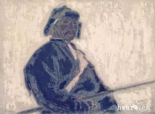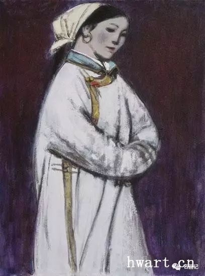 1976年以前的十年里,我基本上沒搞創(chuàng)作,沒服從當時每年一個創(chuàng)作要求、規(guī)定題材方向、主題要求的指示精神。什么今年學毛選,明年赤腳醫(yī)生……忘記是哪一年,畫了幅《牧區(qū)郵遞員》,騎白馬、穿白茬兒皮襖、雪地里、早晨逆光。壞了,險些被當作了批判的靶子。為什么?后來知道內情的學生告訴我說:“社會主義不能沒有顏色!”去他媽的吧!我和當局互不買賬,于是自謀生路,一頭扎到農村、牧區(qū)畫了不少油畫小風景和人物,也畫了不少素描人物。一方面作寫生,一方面思考以后的作畫。1978年在北京紫竹院展出了七十幅油畫風景寫生,等于一次復蘇后的亮相,還頗受歡迎。1981年,在積累了許多素材及想法的基礎上,我創(chuàng)作了一百來幅畫,在中央美術學院陳列館和民族文化宮先后舉辦了兩次個展。那批畫大部分還是在表現(xiàn)對生活的感受,其中已有另一種苗頭初露頭角。那幅參加法國春季沙龍展的《查干胡》就是出頭的傾向,符號是生活里東烏旗的女孩子形象,沒有什么情節(jié),最沒動態(tài)的姿勢,盤腿坐在那里。坐在哪里沒有交待,我的注意力在藝術語言上。一片紫的底色前,坐著個穿白蒙古袍子的女牧民,沒有環(huán)境和環(huán)境色,用大刷子一次性干到底沒換筆。重要五官部位眼、眉、口鼻等處,都是大刷子的邊角完成。效果滿生動、還傳神。這畫沒起輪廓,大體還沒出現(xiàn)比例和結構的問題。當時擔心的是會不會人們要問坐在哪里?但沒人問,擔心是自己想出來的。這幅畫對我以后的發(fā)展有較大影響,即可以自由的按關系需要設置色彩了。