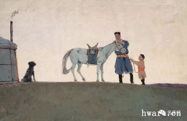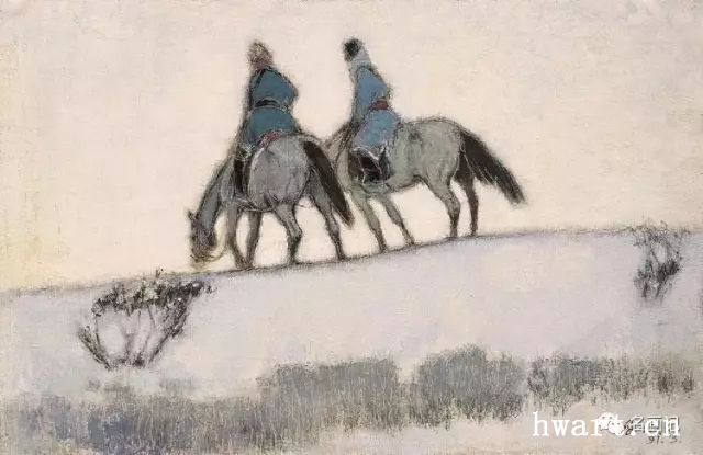 這段變化明顯而成熟,畫了十多幅“蒙古女人和馬”的系列畫,作為藝術符號的人與馬,都各自有意義的上了畫面。蒙古人牧區(qū)的婦女是令人佩服的,她們不依附于男人,高度獨立,自尊、自強、自信。蒙古馬是更堪入畫的符號。純樸、驕健的蒙古婦女和蒙古馬組合成畫面,更能表現(xiàn)各自的魅力,象《午后的風》、《攏》、《啟》、《制》、《秋日》等都是。同時也單就蒙古馬也畫了一些畫,象《秋韻》、《長嘶》等。