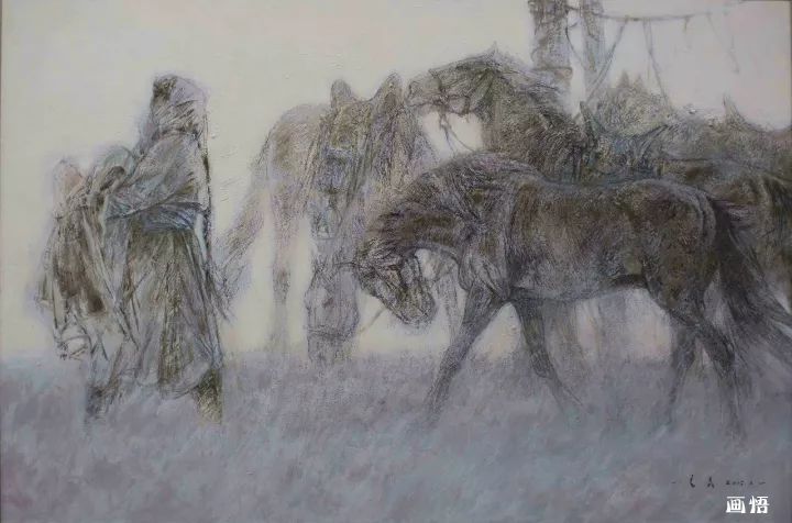 “內(nèi)蒙古草原畫派”是在上世紀(jì)90年代初,媒體和學(xué)術(shù)界對內(nèi)蒙古油畫群體的學(xué)術(shù)冠名。群體進入二十一世紀(jì)后,在內(nèi)蒙古草原油畫院的支持下,老一輩畫家仍在努力,而一批青年畫家已脫穎而出,涌現(xiàn)出一大批優(yōu)秀作品和杰出新人。在內(nèi)蒙古草原油畫蓬勃發(fā)展的當(dāng)頭,是妥木斯先生看到了差距,那就是在油畫藝術(shù)形式和油畫語言上,與全國一流油畫水平的差距。于是,由妥木斯先生提議,2012年成立了內(nèi)蒙古師范大學(xué)妥木斯油畫工作室。工作室成立的目的,就是要利用這個學(xué)術(shù)平臺,培養(yǎng)提高一大批草原畫派的骨干力量,從而影響和帶動內(nèi)蒙古油畫的整體提升。妥木斯先生作為工作室導(dǎo)師,陸續(xù)聘請了16位油畫家成為創(chuàng)作研究人員。在妥木斯先生的指導(dǎo)下,五年來,在藝術(shù)形式、藝術(shù)語言和藝術(shù)處理上狠下功夫,在突破與變革中積極探索。創(chuàng)作出與大都市和南方水鄉(xiāng)截然不同的四百余件油畫作品,為畫家們今后的藝術(shù)創(chuàng)作奠定了新的起點,取得了新的階段性成果。
