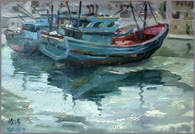 《大生理的避風(fēng)塢》寫生 紙板油畫,32X22CM