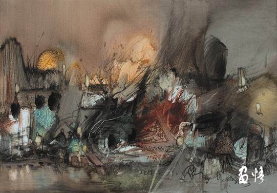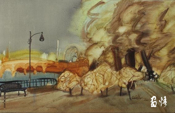 20、姚波《都市行草?夜籟》水彩 56x77(cm)