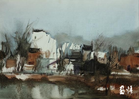 9、姚波《寒林》水彩 78x53(cm)