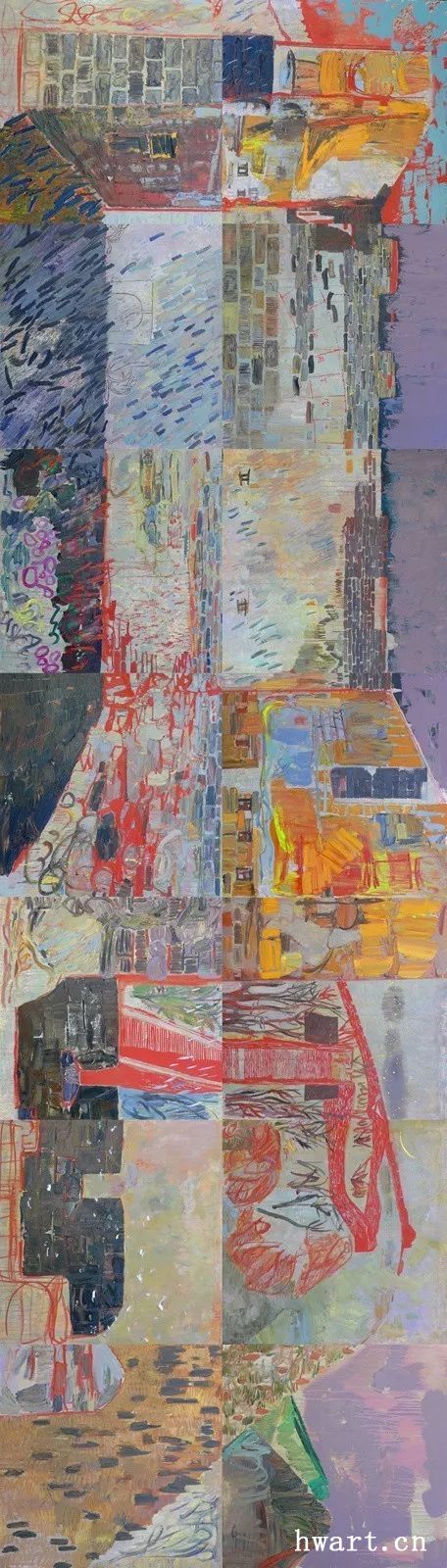 先是2008年,戴士和為自己的個(gè)展,畫了兩張各7米長(zhǎng)、2米高的寫生,一是《金山嶺》,二是《金融街》,全是現(xiàn)場(chǎng)完成。照他講,把寫生畫大,遇風(fēng)畫風(fēng),見雨畫雨,完全沒有常態(tài)寫生講究的那些時(shí)空規(guī)制和“邏輯”。