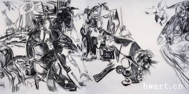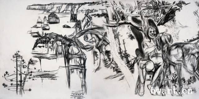 《澳洲十月》素描 約160cmx800cm 2001 年