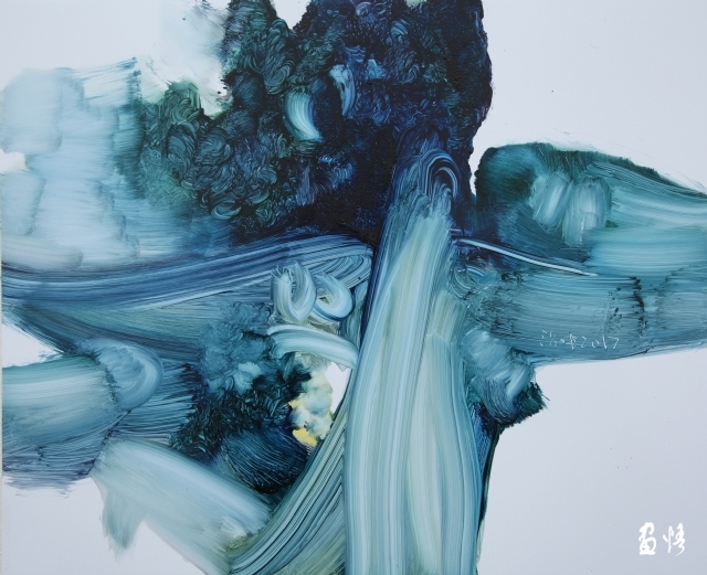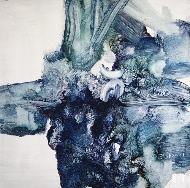 蔚蘭沖擊之三60X60cm,漆板油畫,2017年
