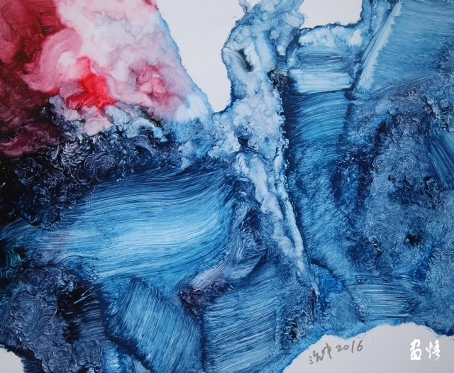 蔚蘭沖擊之一50x60cm,綜合材料油畫,2017年