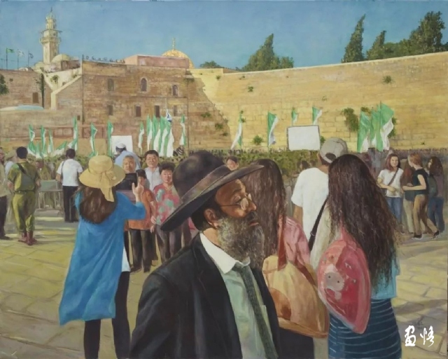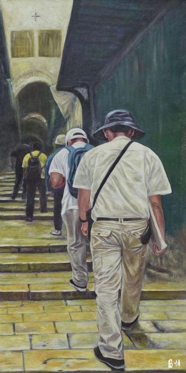 雖然當時我什么都不懂,還是淚流滿面做了決志禱告。信主后有段時間我竟不知畫什么,心里很急,常常坐在畫布前低頭禱告?!敖鹕囊啡隼洹笔俏疫@兩年來的異象,我想透過畫展把耶路撒冷介紹給大家。圣地之旅成為我的生命之旅、復興之旅。