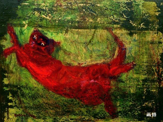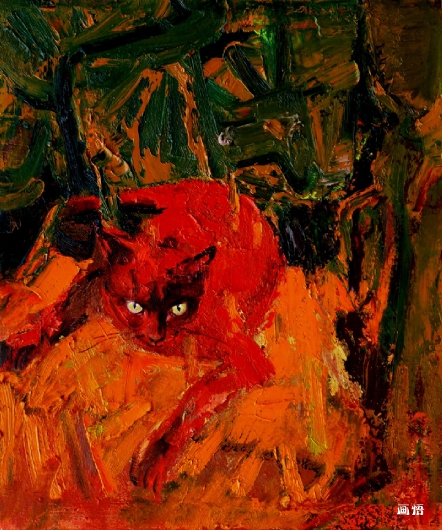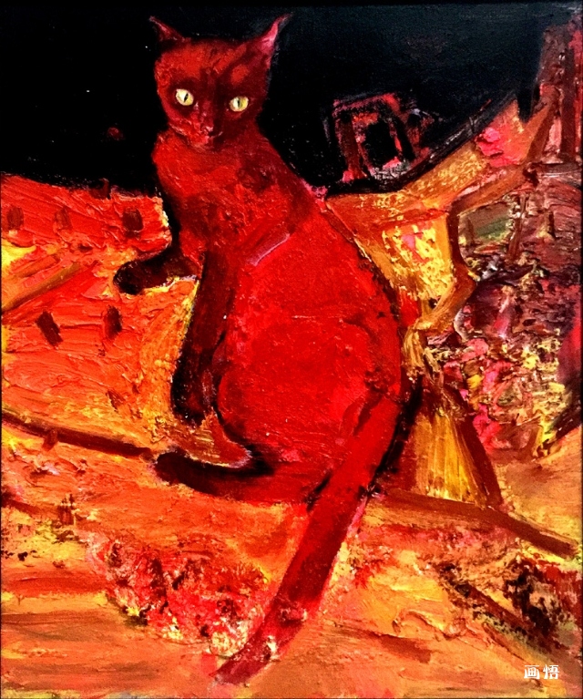 《紅貓》布面油畫(huà)60x50cm陳明華2016 (12)