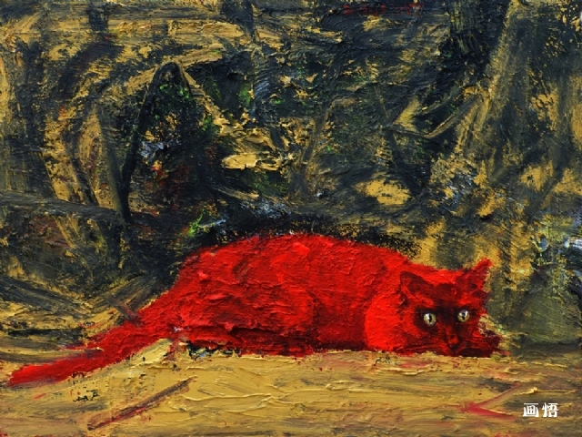 《紅貓》布面油畫(huà)60x80cm陳明華2016 (3)