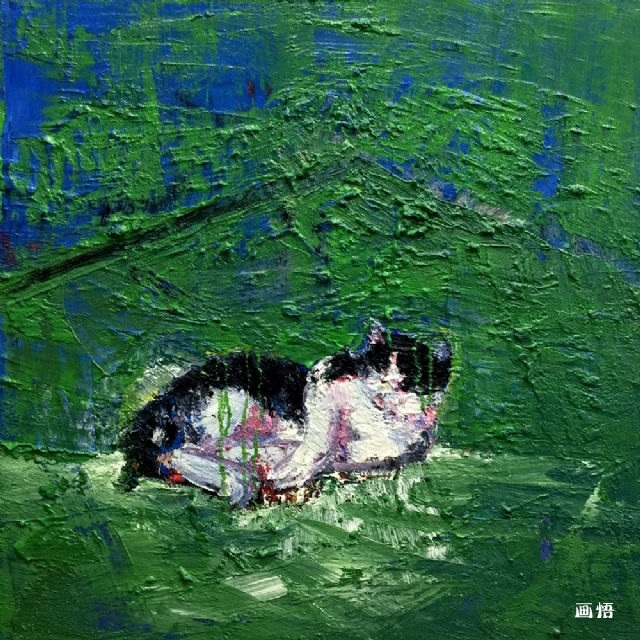 《紅貓》布面油畫(huà)40x40cm陳明華2016 (3)