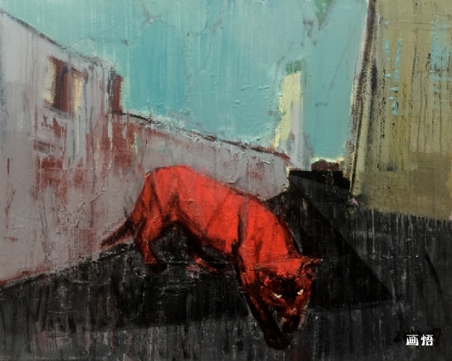 《紅貓》布面油畫(huà)60x80cm陳明華2016 (11)