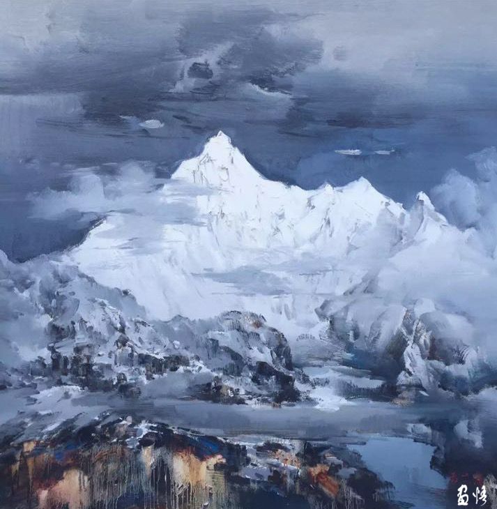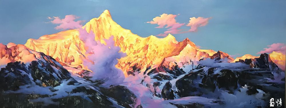 他的雪山油畫系列作品,