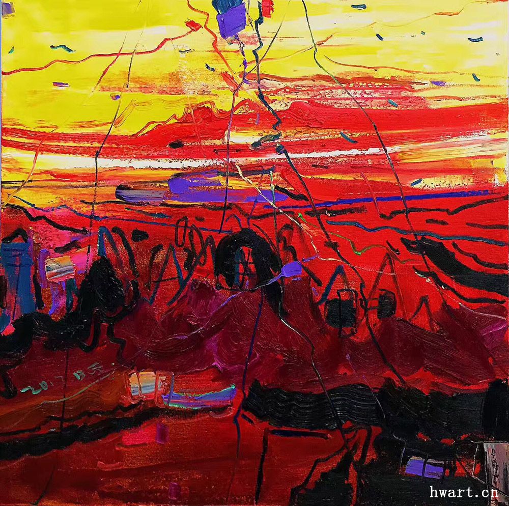 《日落陀川》80x80cm 2017年