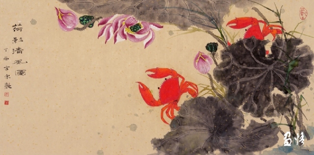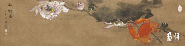 《荷蟹情》 巖彩紙本國(guó)畫 25x60cm 方宋 2016