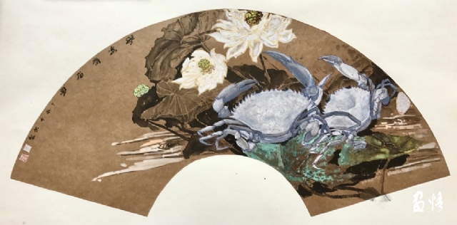 《嶺南酒醇蟹更香》 巖彩紙本國(guó)畫 25x60cm 方宋 2016