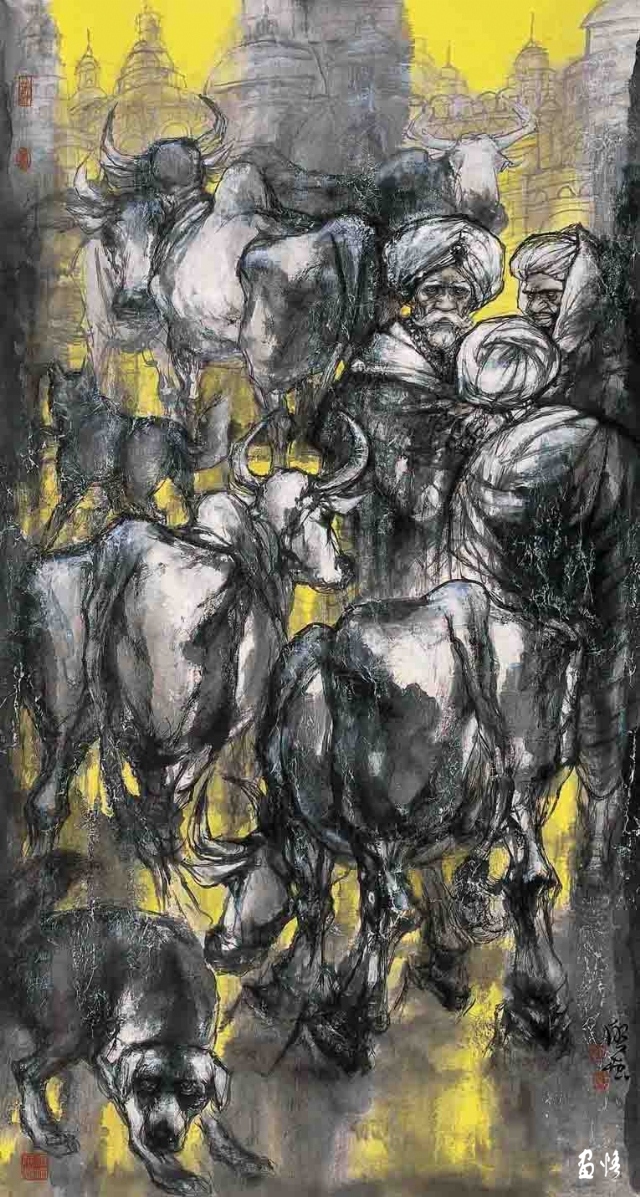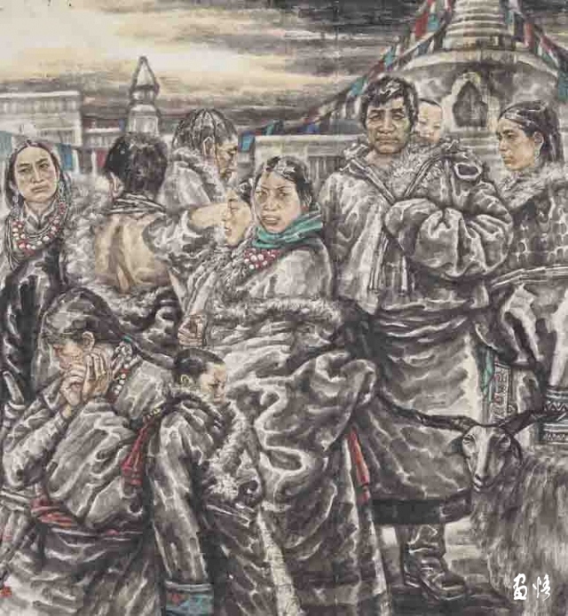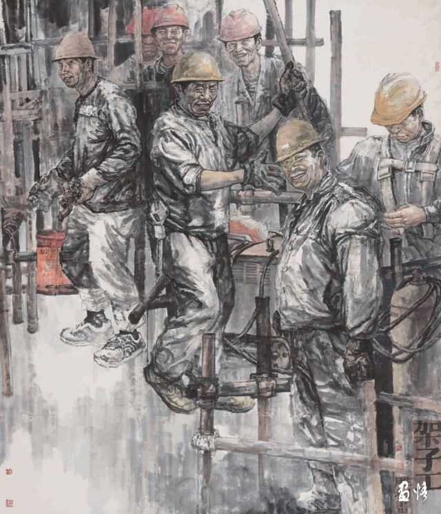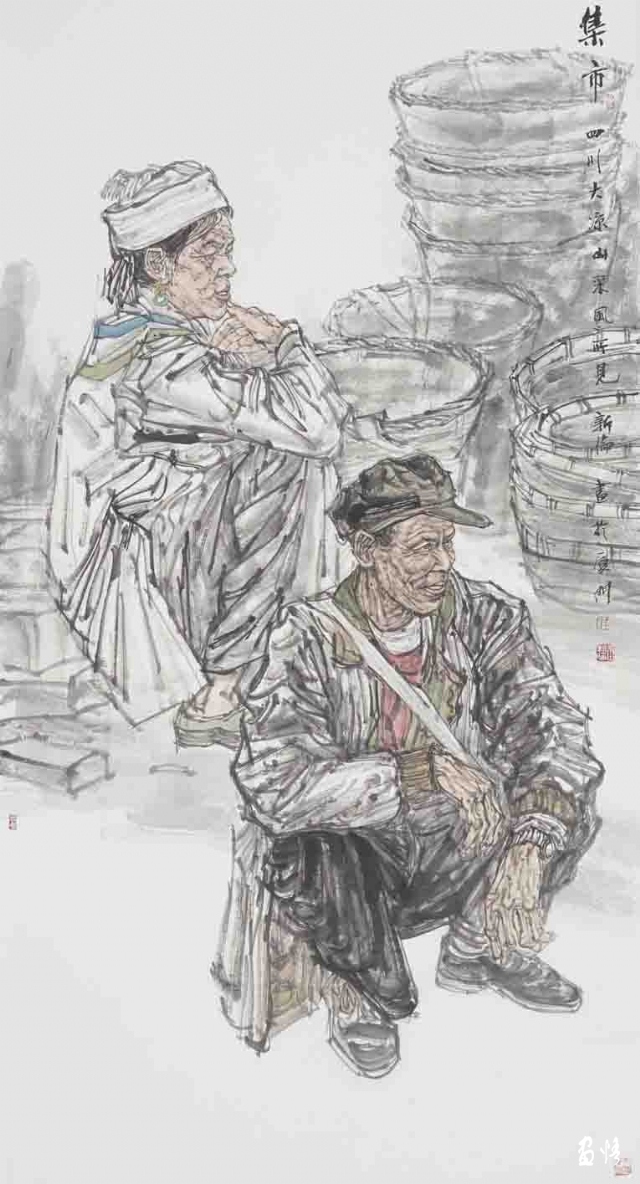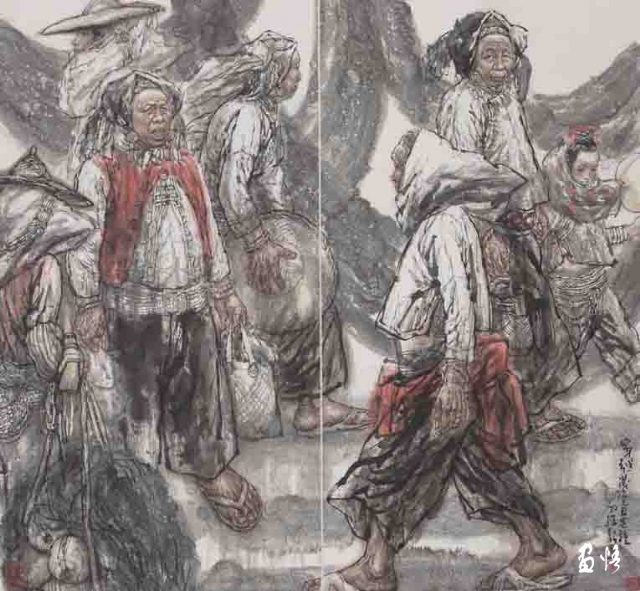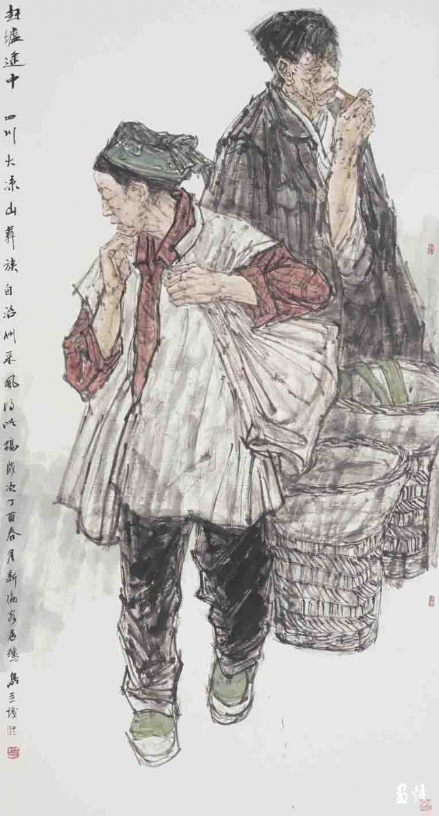 這種“中國精神”首先表現(xiàn)為他的作品總是關(guān)注現(xiàn)實(shí)的“人”和現(xiàn)實(shí)的人的生存狀態(tài)。眾所周知,中國畫史在晉唐以前基本上是人物畫的歷史。但晉唐以降,人物畫逐漸淡出人的視線,至宋以后幾乎全面隱退,讓位給山水、花鳥。一方面,也許是因?yàn)樯鐣霓D(zhuǎn)型造成人的精神的隱退,即當(dāng)對外在的反抗感到力不從心或?qū)€人經(jīng)邦濟(jì)世的愿景感到渺茫時,人們便會轉(zhuǎn)而追求內(nèi)在的精神自由和人格完美,畫者也就自然會“疏于人事”。另一方面,晉唐人物畫的高度成熟使后繼的畫家在繼承中展示的只是“程式”所帶來的樣式,而非“程式”所產(chǎn)生的過程。因而,陳陳相因所帶來的只是作品風(fēng)格的概念化和雷同化。至此,在疏略了“師造化”的傳統(tǒng)內(nèi)涵后,人物畫便成了一個概念化的樣式和“不求形似”的墨戲了。趙勝利對此有深刻的領(lǐng)會。他深知,人物畫的核心是畫人,畫人便離不開對人的關(guān)注,離不開對人的存在的關(guān)注,離不開對社會現(xiàn)實(shí)的關(guān)注。所以,他的作品總是在人物上做文章,并且做足了文章。在他的水墨人物畫作品中,我們可以看到生活的“實(shí)”象,那是以一顆平常心所感受到的平凡的事物和平凡的人,同時,也讓人感受到生活的“真”象,那是人的心理和精神存在。在人物造型上,他摒棄了虛假的和空洞的塑造,而以他熟悉的生活圈子中的人物情態(tài),構(gòu)成畫面貼近當(dāng)下的場境。他那種不加修飾也不加評說的視角,使我們看到他畫中的人物時,就像看到我們自己。我曾經(jīng)在中國美術(shù)館觀看過一場叫做“關(guān)切的向度”的水墨人物畫展,印象頗深。這個展覽展出了梁占巖、劉進(jìn)安、袁武、周京新、張江舟、劉慶和6位中國當(dāng)代著名的水墨人物畫家近年來創(chuàng)作的作品,這些作品展現(xiàn)了他們在水墨人物畫創(chuàng)作上的個性探索,也展示了當(dāng)代水墨人物畫在“關(guān)切”這一主題上的新的拓展。我想,這些畫家的作品之所以給像我這樣的觀眾留下極深的印象,正在于他們的作品在直面生活、感受現(xiàn)實(shí)的基礎(chǔ)上,以極富思想力度的視覺語言,表達(dá)了深刻的文化之思,特別是對人的關(guān)切。無論是梁占巖的鄉(xiāng)土情懷、袁武的質(zhì)樸虔誠,還是張江舟的崇高悲憫、劉慶和的隔岸悠游,都以各自的筆墨拓展著水墨人物畫的廣度和深度。畫家以不同的向度體現(xiàn)出對“人”的主題的深刻關(guān)切,由此帶動對水墨語言表現(xiàn)力的探索。在趙勝利的水墨人物畫作品中,也同樣體現(xiàn)著這種“切身”和“切心”的藝術(shù)情感,這種藝術(shù)情感構(gòu)筑了他的作品的“中國風(fēng)”,以他由人民美術(shù)出版社出版的《中國當(dāng)代名家趙勝利作品選粹》和由文物出版社出版的中國高等藝術(shù)院校教學(xué)范本《趙勝利人物作品》為例,其中的《農(nóng)民工系列》《彝人系列》等都表達(dá)了他對人的生存狀態(tài)的現(xiàn)實(shí)關(guān)照。