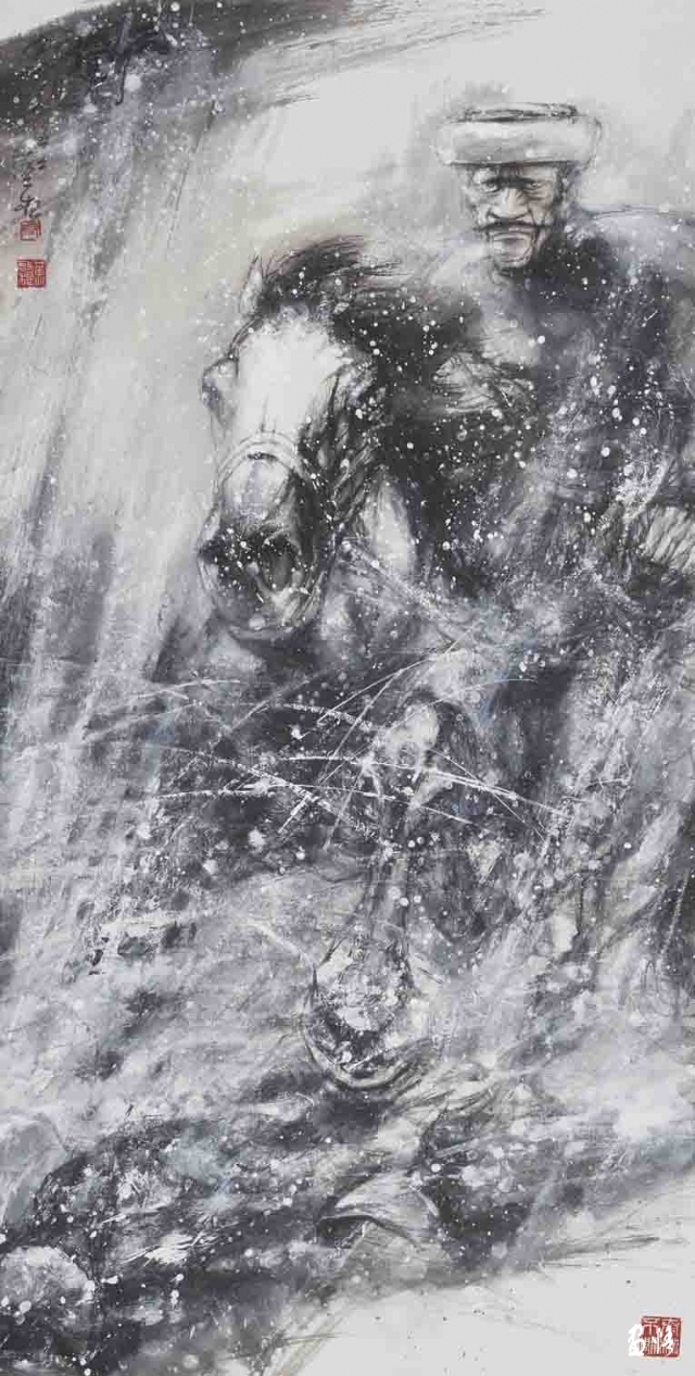 勝利兄要我為他的作品寫一篇評論,我拉拉雜雜寫了以上這些。勝利兄很忙,我知道他在這個位置上的壓力,因?yàn)橛性S多挑剔的目光在注視著他。但我更相信,憑著他豐富的人生閱歷、多樣的文化積累、不懈的探索精神,他的藝術(shù)創(chuàng)作之路一定會越走越好,他的水墨人物畫創(chuàng)作一定會找到最適合自己的創(chuàng)作主題和探索路徑。