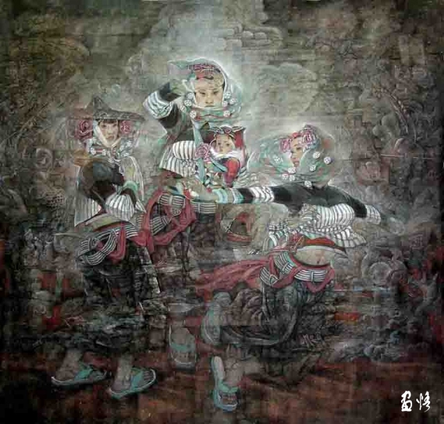 翁振新在藝途上走過一段艱苦曲折的道路。他作為老三屆的學(xué)生,當(dāng)過臨時工,做過農(nóng)民。進(jìn)福建師大美術(shù)系后,學(xué)過油畫,畫了不少素描。在學(xué)習(xí)和實(shí)踐過程中,他感覺自己對中國畫的人物畫最有興趣,最能在這個領(lǐng)域里發(fā)揮特長,在浙江美術(shù)學(xué)院研修中國畫期間,得到不少名家的指點(diǎn)。之后,他有一股強(qiáng)烈的愿望試圖擺脫畫界流行模式的影響,樹立自己獨(dú)特的畫貌和藝術(shù)風(fēng)格。這從他近幾年的作品中可以看得出來。他在給我的來信中說:“我一直苦苦尋求東西方審美的交叉點(diǎn),不斷變換觀察方式和表現(xiàn)方法……我自認(rèn)近幾年在作畫中注意有所追求?!笔堑?,這幾年他一直在攻如何在傳統(tǒng)美學(xué)大框架內(nèi)融合西方藝術(shù)(特別是現(xiàn)代藝術(shù))這一難關(guān),尋找屬于他自己的藝術(shù)語言,尋找個人性格、氣質(zhì)與藝術(shù)內(nèi)容和風(fēng)格三位一體的最佳結(jié)合點(diǎn)。應(yīng)該說,他既有收獲果實(shí)的喜悅,又有感到還需付出更多心血的苦惱。對此翁振新頭腦清醒,對自己有嚴(yán)格的要求。我認(rèn)為,只要方向?qū)︻^而又有切實(shí)可行的步驟,理想的目的一定能達(dá)到,事實(shí)上,翁振新在寫實(shí)與寫意、象征手法的結(jié)合上,已經(jīng)取得很好的成果,并得到社會的承認(rèn),他的作品多次參加全國美展,有的還獲獎,就充分說明這一點(diǎn)。我的朋友福建師大賴耀先教授在給我的信中對他的創(chuàng)作做了很確切的評價:“我覺得他的畫融匯中西,寫意與象征渾然一體,有的畫,一瀉千里,自然灑脫;有的畫,情景交融,凝重深遠(yuǎn);有的畫,傳統(tǒng)中隱約吹來現(xiàn)代的氣息,給人以清新之意;有的現(xiàn)代畫(如《無聲的輝煌》)內(nèi)中朦朧蘊(yùn)含傳統(tǒng)的典雅,給人以雄壯秀美之感?!?/div>