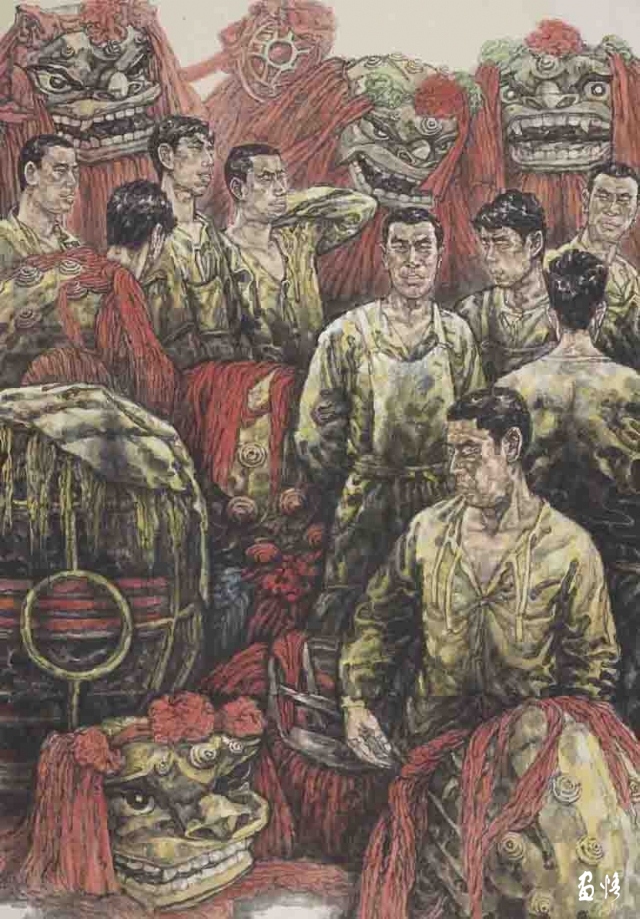 其次,趙勝利作品的這種“中國精神”體現(xiàn)為他始終把水墨當(dāng)作精神的觸角 , 在用筆用墨用水用彩中似有常規(guī)來路 , 卻能夠自如自覺自然地偏離已有的程式和規(guī)范 , 感性而尖銳地進(jìn)行屬于自己的探索。筆墨在他那里是一種敏感的語言 , 用以表達(dá)他敏感體驗(yàn)到的現(xiàn)實(shí)。無論是他的主題性創(chuàng)作《炮擊金門》,還是他的為紀(jì)念紅軍長征勝利80周年而創(chuàng)作的近作《紅色記憶之楊成武》,都特別專注人物精神世界的刻畫,努力以形寫神,求形神兼?zhèn)??!杜趽艚痖T》記錄了一個特殊時代的歷史事件,兩岸曾經(jīng)的對峙,炮聲隆隆中的歷史硝煙,前線軍人“我們要解放臺灣”的雄心壯志,人物刻畫惟妙惟肖,有的戰(zhàn)士在裝彈,有的戰(zhàn)士在瞄準(zhǔn),有的戰(zhàn)士在發(fā)電報,有的的戰(zhàn)士在拿著望遠(yuǎn)鏡暸望,有的戰(zhàn)士扛著彈藥箱,一位頭戴鋼盔的軍官揮舞著紅色的指揮旗正在下令向金門開跑,碉堡、子彈箱、發(fā)報機(jī)、醫(yī)藥箱、水壺、沖鋒槍、火炮,還有巖石、龍舌蘭以及硝煙定格了曾經(jīng)的歷史。戰(zhàn)爭,是為了捍衛(wèi)和平;和平,是為了阻止戰(zhàn)爭,《炮擊金門》以豐富的筆墨形式對此做了由“看不見”到“看得見”的描述,讓我們能夠藉由畫家的精彩水墨重返歷史的現(xiàn)場,重溫歷史的一幕。《紅色記憶之楊成武》則以黑白的基調(diào),描繪了一位將軍威武的形象。楊成武帽子上的紅五角星和紅領(lǐng)章特別醒目,把革命的英雄主義和革命的浪漫主義表現(xiàn)得淋漓盡致。在形象刻畫上,他尤其關(guān)注眼神的刻畫,講究畫面和人物形態(tài)的整體感和單純感。趙勝利的水墨人物畫總是能夠真切地表現(xiàn)出他的當(dāng)代思考,表現(xiàn)出他總能真實(shí)地面對生活 , 真誠地表達(dá)自己的內(nèi)心感受。而我認(rèn)為,作為一位真正的藝術(shù)家,只有這樣的藝術(shù)創(chuàng)作,才具有恒久的生命力 , 也只有這樣 , 水墨人物畫才能在當(dāng)代的態(tài)勢下?lián)碛凶约旱恼Z言力量。趙勝利的水墨人物畫沒有刻意顛覆傳統(tǒng)中國式的審美,也不注重那種“孤芳自賞”式的文化趣味和“小我”價值的體現(xiàn),更不渲染那種游離曖昧的兩性情感,而總是有大情懷、大視野、大格局,雖然他也在傳統(tǒng)與革新沖突中長期浸染熏陶,但他卻總能選準(zhǔn)自己的藝術(shù)方向,在面對西方藝術(shù)思潮與中國傳統(tǒng)文化價值沖突的時代,他以不保守的堅持傳統(tǒng)水墨作為當(dāng)代文化突圍的手段,將西方現(xiàn)代主義寫實(shí)形式與中國傳統(tǒng)寫意結(jié)合起來,表達(dá)出當(dāng)代人的精神特質(zhì)。趙勝利的創(chuàng)作總是扎根生活,從現(xiàn)實(shí)生活中尋找創(chuàng)作的資源,面對人物寫生,是趙勝利認(rèn)定的須臾不可離開的基本功。