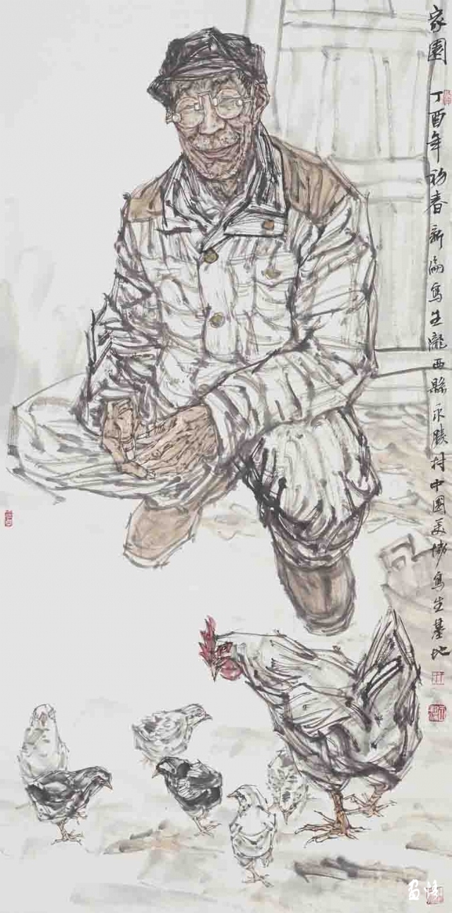 勝利兄告訴我,小時候他就喜歡畫畫,常常趴在雪地里用樹枝畫坦克和天安門,也許從那個時刻開始,藝術(shù)的天性便被漸漸喚醒。而在我看來,對于早諳繪事的勝利兄來說,選擇中國水墨畫作為人物畫創(chuàng)作的追求目標(biāo),其實(shí)是走了一條非常難行的路。但幾十年走過來,他卻一如既往,孜孜矻矻。個中原因,是因?yàn)樯杏幸环N堅定與執(zhí)著。其實(shí),除了水墨人物,勝利也畫花鳥、山水,只不過如今時間有限,他把更多的精力時間投入到水墨人物畫創(chuàng)作之中罷了。