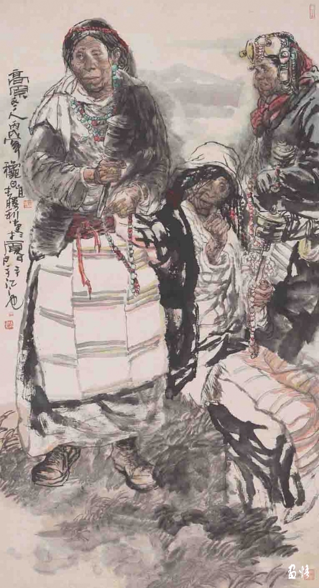 中國水墨人物畫家大致可以分為兩類,一類是以形寫形,只追求突出筆墨情趣 ; 一類既講究筆墨,更追求形神兼?zhèn)?。然而,?dāng)檢索中國畫的歷史長河時卻不難發(fā)現(xiàn),中國的水墨人物畫,其實(shí)大多停留在簡單的線條與平面的描驀上。而趙勝利的水墨人物畫作品卻在筆墨形式上進(jìn)行了大量的當(dāng)代探索。他的水墨人物畫作品《雪域高原》《祥云》《快樂時光》,他的《架子工》《惠女風(fēng)情》《牧歸》《芭蕉情》,都體現(xiàn)了這種有意義的充滿文化性的筆墨探索。這些作品并非是畫家對于傳統(tǒng)文人精神境界的向往和復(fù)制,而是將傳統(tǒng)形式作為當(dāng)代人的情感寄托,引起觀者的共鳴。