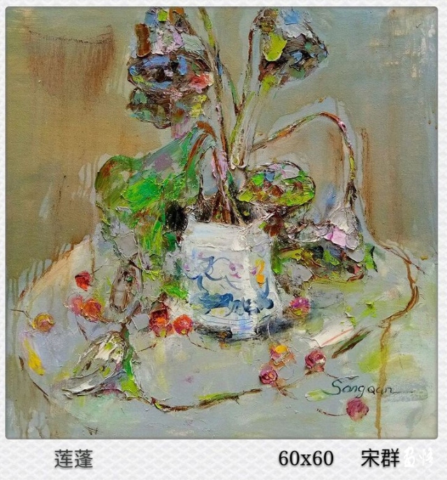 不同的花朵,有著不同的美感。盛放之靈動,凋謝之凄美。它最能打動你的時候,也就有了想表達的意愿,需要的東西和感覺就會跑到畫布上來。不同花朵的大小、形狀、朝向、疏密、色彩、布局等等,在雨露麻上快樂地播種,賦予它一種美感與形式感。