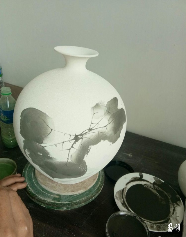 筆尖,牽著一雙凝視的眼睛,雙眸用一種能播撒生命的目光,在胚體上寫意著。筆隨心走,意隨筆至,摒心靜氣地完成每一件作品。賦予它一個(gè)美麗的輪廓,一個(gè)屬于它自己的不可復(fù)制的模樣。
