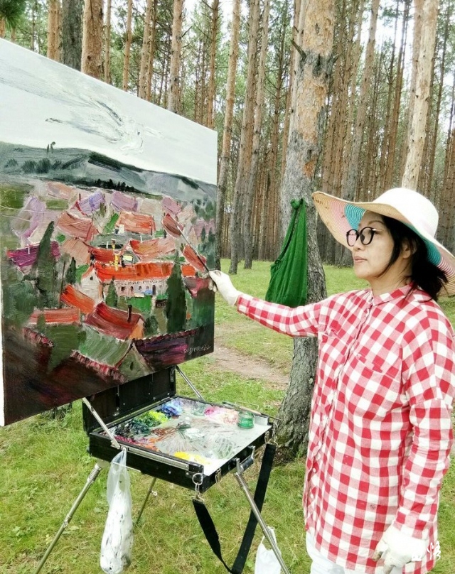 面對畫布,腦海中翻騰著無數(shù)個畫面。該如何表現(xiàn)眼前的白樺林?該如何表現(xiàn)它的陽光它的明媚它的自信與它的驕傲?那一雙雙眼睛,是滿含笑意還是噙著淚痕?