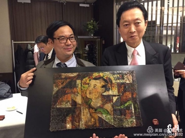 日本前首相鳩山友紀(jì)夫先生對周榕清教授麻胎漆畫高度興趣,他覺得畫面《絲路妙音》系列游離在「似與不似之間」。 歷史的滄桑,斑駁的畫面由此產(chǎn)生變幻莫測的視覺藝術(shù)效果非常獨(dú)特。并祝賀周教授畫展成功。