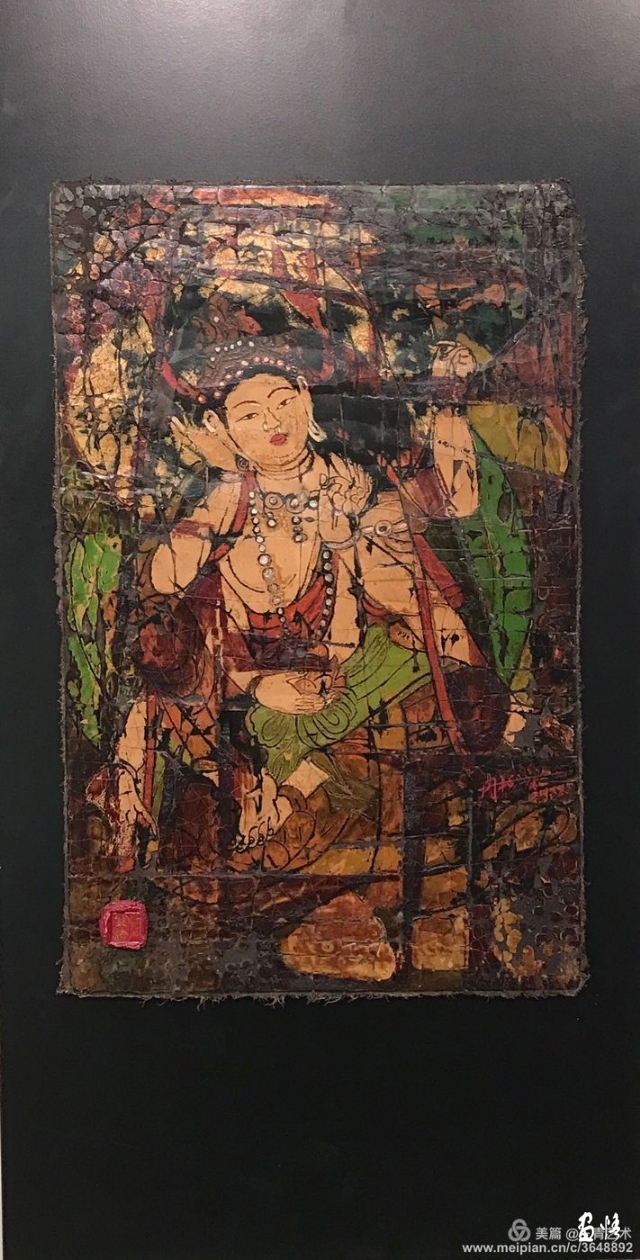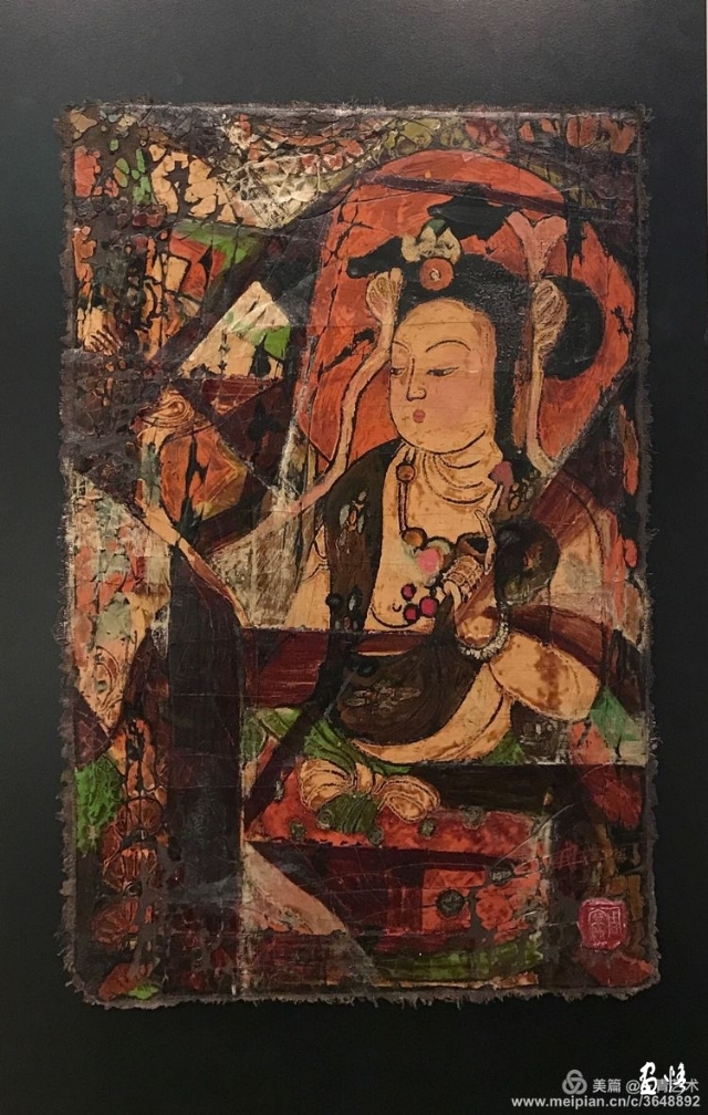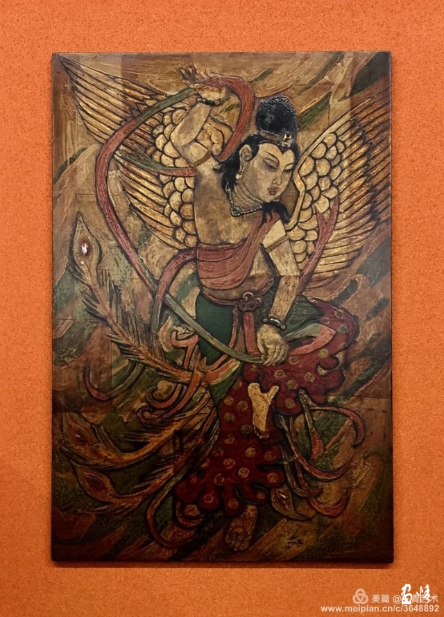 《絲路妙音》系列漆畫在圖式上不僅汲取了中國傳統(tǒng)的絲路壁畫中的繪畫構(gòu)成,還借鑒了西方繪畫現(xiàn)代派的表現(xiàn)技法。