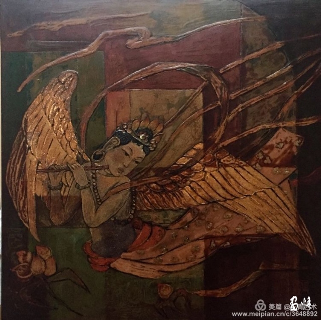 絲路妙音系列漆作品受源遠(yuǎn)流長絲路壁畫影響。古今中外融合的文化,雖經(jīng)歷久遠(yuǎn)時(shí)光的蝕化,卻仍能散發(fā)出強(qiáng)大的魅力,絲路之情,禮尚大美,體現(xiàn)對人類精神家園孜孜不倦地守望。周榕清說和平與大愛的哲學(xué)思考和發(fā)揚(yáng)理性的古典精神,這也是我從未改變的追求,無論是在我的藝術(shù)發(fā)展的生成、蛻變還是遷化時(shí)期,都或隱或顯地體現(xiàn)著,這種精神組成的內(nèi)力以及對繪畫語言的探索求新使得我的作品呈現(xiàn)出不同的面貌,給予古典現(xiàn)代性的闡釋,體現(xiàn)出現(xiàn)代人追求與向往的立場。在向中國古典繪畫汲取營養(yǎng)的同時(shí)沒有忘記漆材料的特性,逐漸形成個(gè)性審美取向。