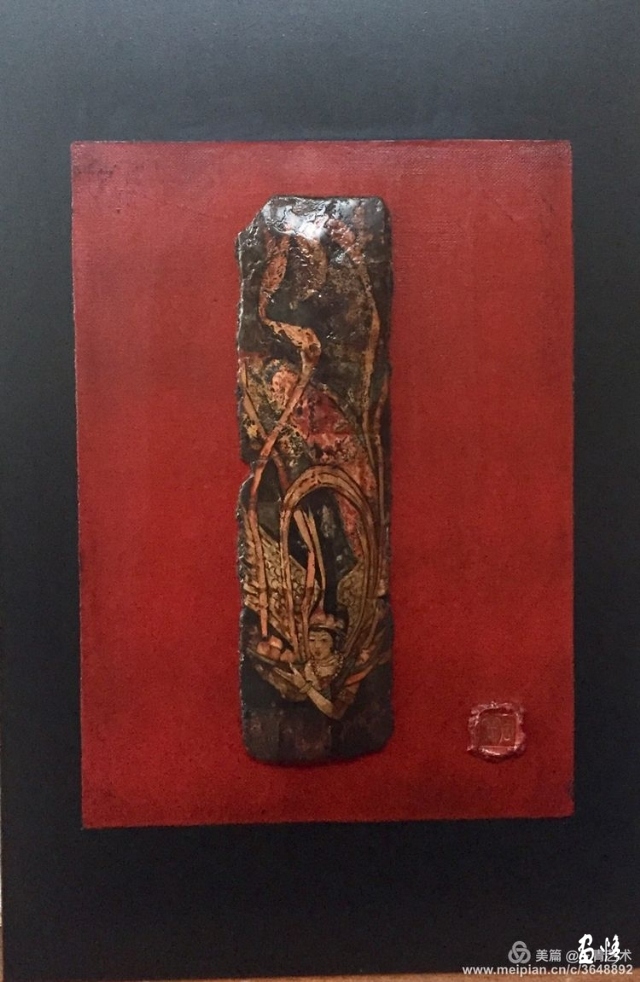 這是一種與傳統(tǒng)漆畫即相似又不同的漆作品,它在平面的畫布上展開,但所有漆的語言、工序都沒有缺少。作品沒有一味追求漆材質(zhì)的炫目光澤感,而將髹漆打磨形成粗獷而含蓄的視覺效果。畫面上保留了古典繪畫的內(nèi)在的統(tǒng)一、寧靜,讓人耳目一新。