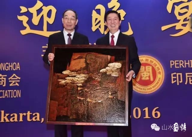 周榕清教授漆畫《家園金秋》隨福建省委書記尤權(quán)出訪印尼,作為貴重禮物由印尼中華總商會保存留念。他的又一個"女兒"再次出國門,在南洋落戶。