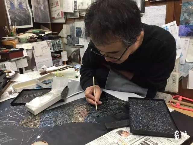 沈金工藝,釆用金粉來(lái)表達(dá)濃淡虛實(shí)。