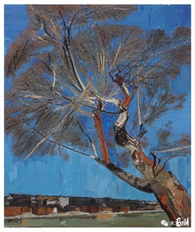 在色彩的處理上運(yùn)用客觀的色彩和主觀色彩相結(jié)合,注意變化統(tǒng)一原理,并非只是印象派的光色原理。這幾張畫都是在現(xiàn)場寫生創(chuàng)作完成,從早上畫到傍晚,在這種光照逐漸變化的過程中,注意感受每個(gè)時(shí)間段物象產(chǎn)生的色彩變化。色彩的處理主要根據(jù)畫面主次關(guān)系、色調(diào)和節(jié)奏變化而定。當(dāng)然不是主觀臆造,在注重強(qiáng)化感受的同時(shí)一定要注意比較觀察色彩變化的次序和整幅畫面的色調(diào)感。我的體會(huì)是特別注意背景(如天空、地面等次要景物)的色彩處理,整個(gè)畫面的視覺感受或?qū)Ρ葟?qiáng)烈或含蓄優(yōu)柔,都與背景的處理至關(guān)重要。背景色彩的處理可強(qiáng)化出主體部分,也可減弱主體部分,所以背景的色彩可根據(jù)畫面需要加以主觀處理。