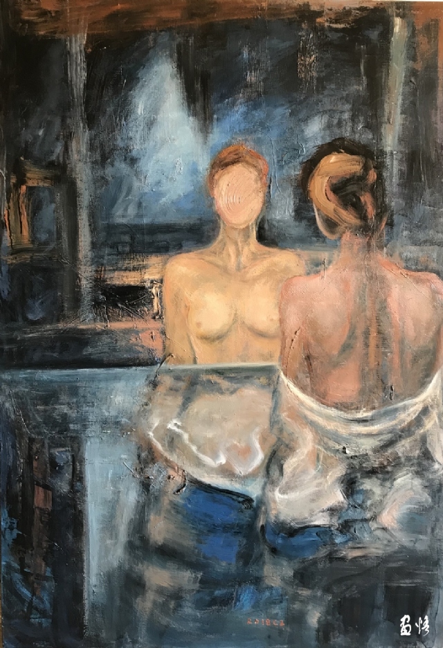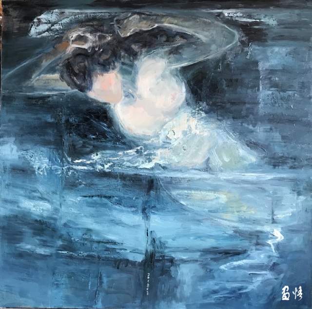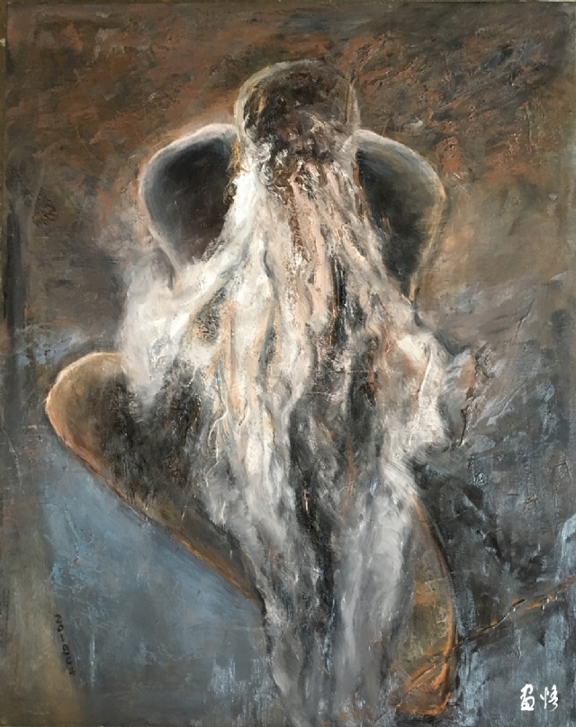 當(dāng)然,王聰作品的語(yǔ)言張力,絕非單純依靠情緒宣泄的表現(xiàn)性可以完成,生命原址才是王聰作品品質(zhì)的支撐底色。這點(diǎn)在她的“靈·域”系列和“歲月”系列作品中都可看到:“靈·域”作品中以魔幻或超現(xiàn)實(shí)手法置于前景的女人體,融入或抽離的背景依然是天地自然的景觀,這是否意味為不管生命如何表演,最終自由落體的方向依然是回到自然原鄉(xiāng)的時(shí)空序列?這一思考方向的確認(rèn)最終由“歲月”系列作品完成。人類置身于天地自然之間,過(guò)去與未來(lái),若春風(fēng)拂面的流動(dòng),與四時(shí)風(fēng)沙共在,合并為蒼茫渾然的祥和。王聰?shù)睦硇院蜏厍樵诖艘挥[無(wú)遺。