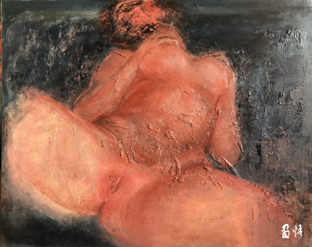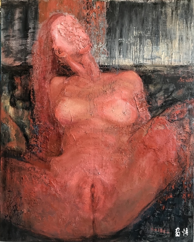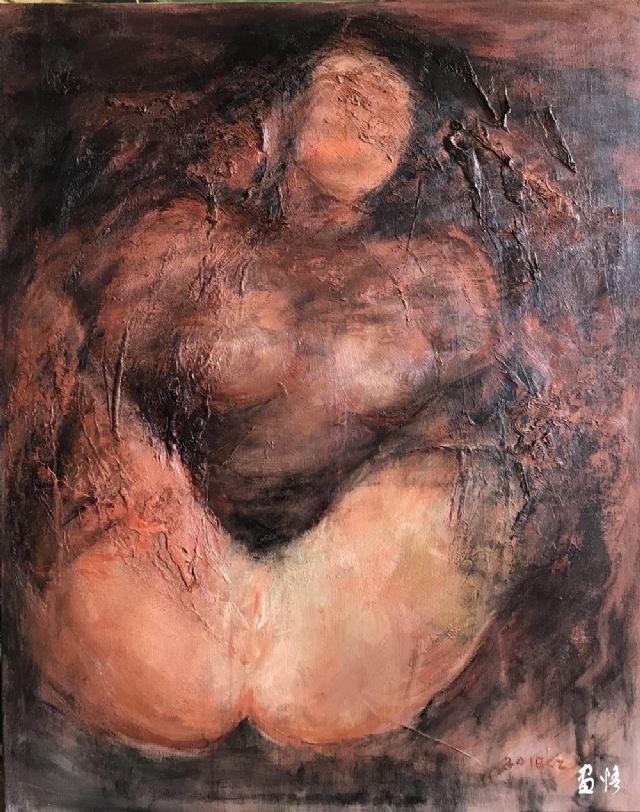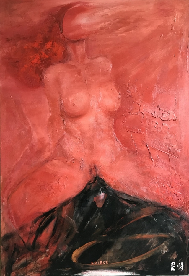 作為女性藝術(shù)家,王聰?shù)淖髌凡皇軅鹘y(tǒng)道德典范的約束,糾結(jié)于個(gè)人心境的幽怨呢喃。反倒是帶著雄性力量的張揚(yáng),將帶著明顯性征的人體放大,置于畫面中間,大膽而直接。由此造成讓心靈震顫的視覺沖擊力,這種畫面中情感投入的力量強(qiáng)度讓我聯(lián)想到面對(duì)著蒙克的《吶喊》。所不同的是,她不像蒙克作品指向的面對(duì)死亡的極端悲慘,而是處在個(gè)人體驗(yàn)結(jié)合旁觀審視的角度進(jìn)行呈現(xiàn),在女性和環(huán)境現(xiàn)實(shí)之間的關(guān)系處理和精神表述上體現(xiàn)出很強(qiáng)的力量感,一種由心奔涌而出的真實(shí)體驗(yàn)。其中同時(shí)隱現(xiàn)著施、受虐,反抗、迎合,迷離、開心,母性,大地以及生命原罪等多重矛盾和隱喻。指向今天中國(guó)現(xiàn)實(shí)社會(huì)里,女性走向前臺(tái)所面對(duì)的諸多問(wèn)題的揭示。