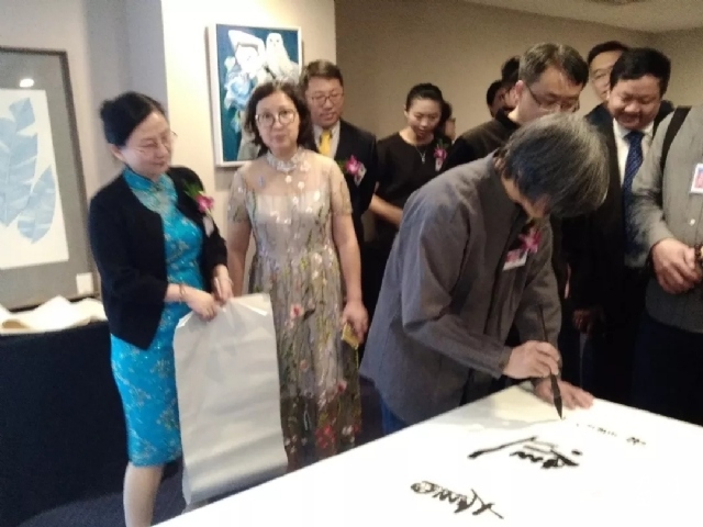 開(kāi)幕式上,主辦方代表澳大利亞滿足集團(tuán)董事長(zhǎng)戴秉凡致歡迎辭,表示中華文化藝術(shù)源遠(yuǎn)流長(zhǎng),身為海外華人,有責(zé)任助力中華優(yōu)秀的文化藝術(shù)走向國(guó)際,推動(dòng)文化藝術(shù)的民間交流和互動(dòng)。他認(rèn)為中西方文化藝術(shù)的交流,有助于激發(fā)藝術(shù)家們的創(chuàng)造力,促進(jìn)國(guó)家文化繁榮興盛。