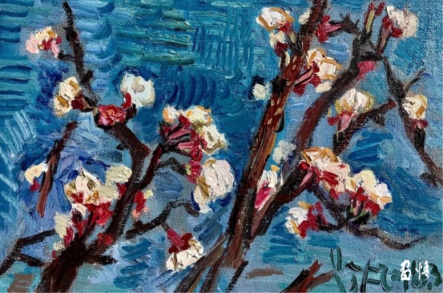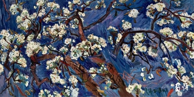 他最喜歡收獲的前夕,六成左右的時節(jié),喜歡即將收獲時隨之而來的可以大搞破壞的好時機。要親自破壞自己的畫面,親手破壞才能實現(xiàn)對自己新的考古發(fā)現(xiàn)!大家都把自己的畫面一隴一隴按一個好的莊稼把式的要求耕成模范田,一筆一畫施肥澆水,而且還從構(gòu)圖到筆法密實四圍,把自己一勺一勺澆到地里的水好好的攏在地里汪著,天上的弦月映在水里,也像是帶著雙下巴的笑,天下太平,突然,他趁我們不備,飛起一腳,踹塌自己田埂的一大坨泥,我們,都想去搶奪他手里的畫筆!剛才的畫面,安全著,好端端的,他卻突然歪七扭八像個惡作劇的孩子極速甩畫上斜道道,擰上圓圈圈,暗自開懷。